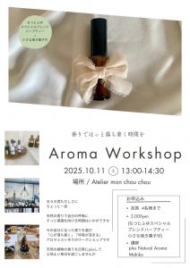 さて、まだまだこの暑い毎日から、少しでも抜け出して、素敵なお好みの香りに癒されたい方にAroma Workshop のご案内です。